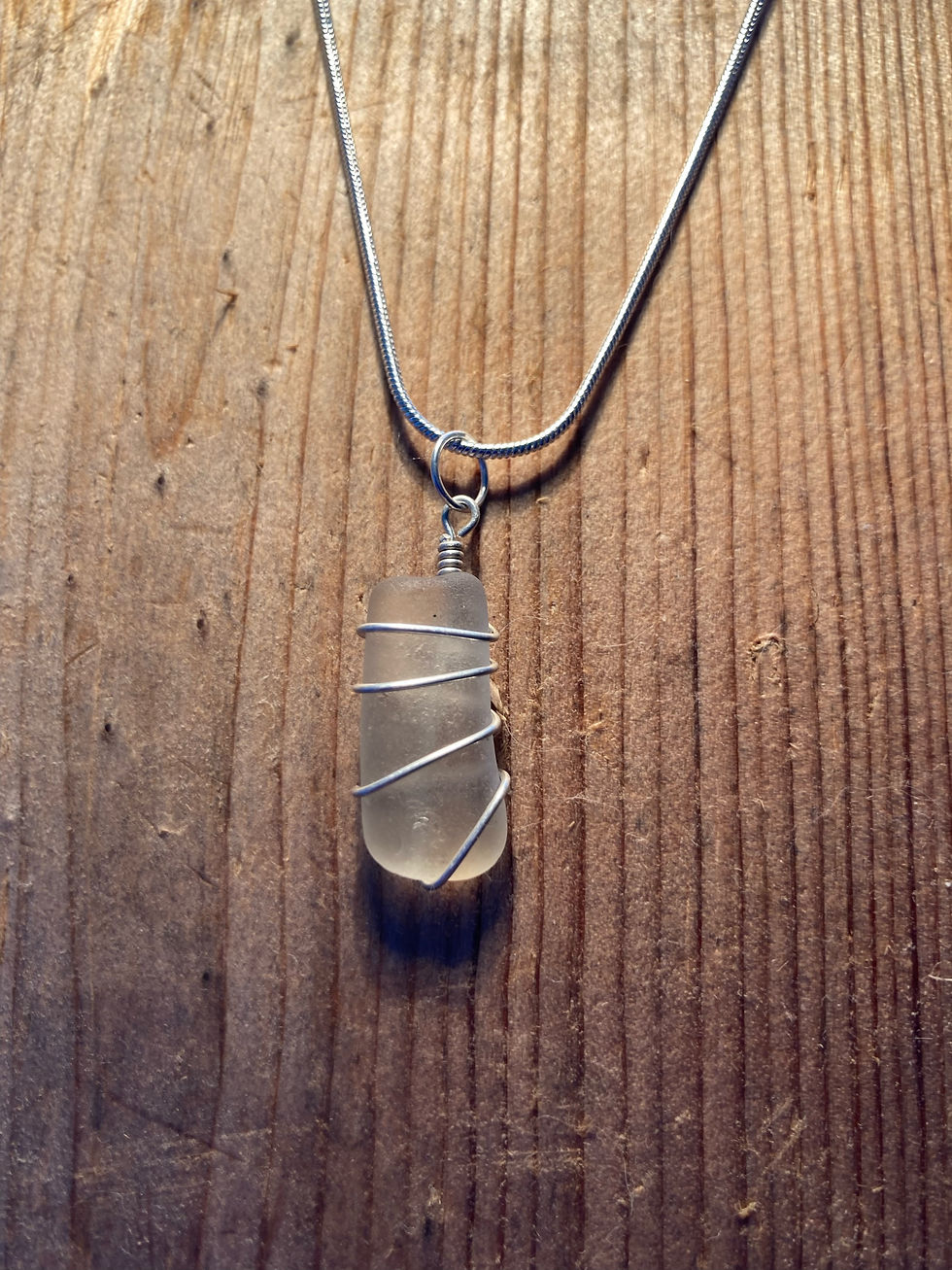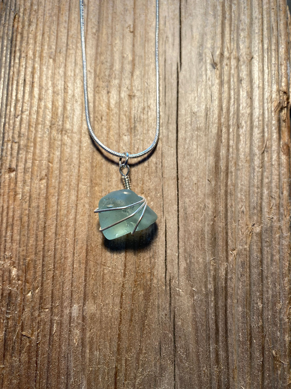 Aqua Seaglass Necklace in Sterling Silver - SA32