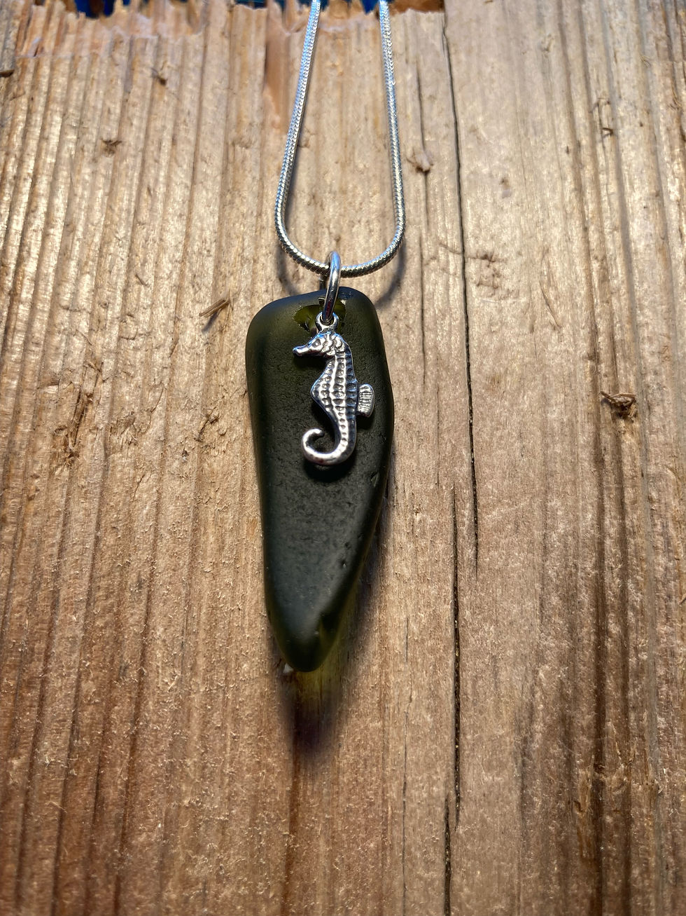 Green Seaglass Necklace + Seahorse - Sterling Silver -SG2